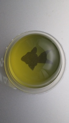 それぞれ、透明な容器の底に濃い色のゼリーで