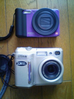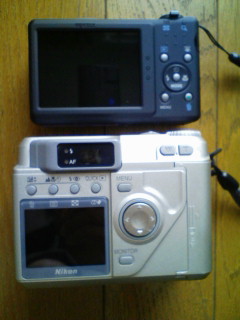 廃棄準備中の旧カメラと並べてみました。携帯撮影で青被りが激しいです。