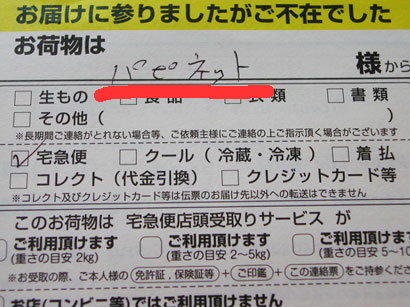 数日前、帰宅すると宅配便の不在通知が入っていました。